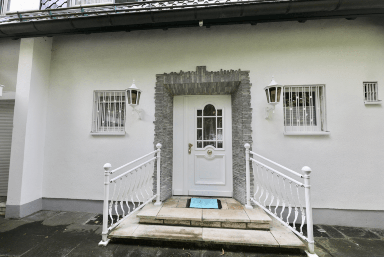 Das Gebäude ist mit hochwertigen, teilweise neuwertigen Fenstern aus Kunststoff oder Aluminium ausgestattet, die größtenteils über Jalousien verfügen. Im Dachgeschoss sind Velux-Fenster mit Jalousien sowie Fliegengittern und Sonnenschutzrollos vorhanden. Und auch bei der Eingangstür aus Aluminium mit einem Wert von ca. 12.000 EUR wurde nicht gespart.