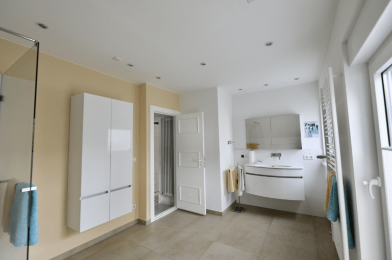Das Obergeschoss und das Dachgeschoss sind mit einem hellen Teppichboden ausgestattet. Das Dachgeschoss verfügt zudem über eine Fußbodenheizung, ist aber auch an die zentrale Gas-Heizung angeschlossen.