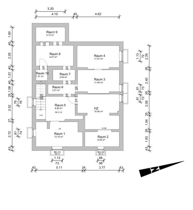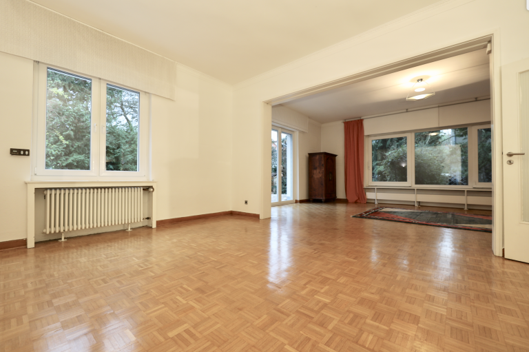 Die freistehende, 1938 errichtete 7-Zimmer-Villa, erstreckt sich über drei Etagen inklusive eines ausgebauten Dachgeschosses und ist vollunterkellert. Im Jahr 1961 wurde die Villa zu einem Zweifamilienhaus umgebaut und verfügt über eine Wohnfläche von ca. 300 m². Die Villa wird von einem wunderschön gestalteten Grundstück umschlossen.