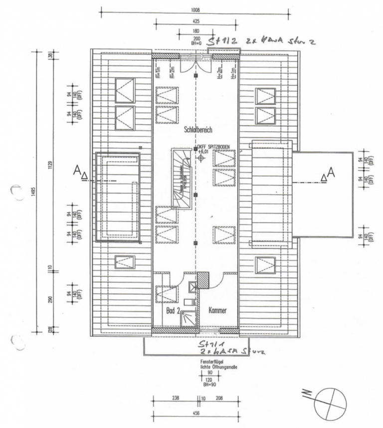 Die Dachgeschoss/Spitzboden-Ebene wurde 2004 und 2014 ausgebaut, ist mit dem Obergeschoss zusammengelegt und wird über eine moderne Holztreppe erschlossen. Hier befindet sich ein schönes Schlafzimmer, ein Duschbad sowie ein weiterer Raum, der sich gut als Ankleidezimmer eignet.