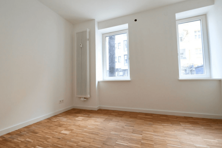 - alle straßenseitigen Fenster haben jeweils einen Öffnungsflügel mit Dreh-/Kippbeschlag und sind dreifach verglast