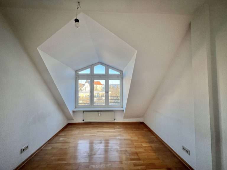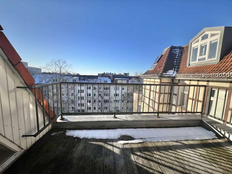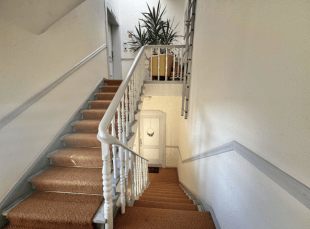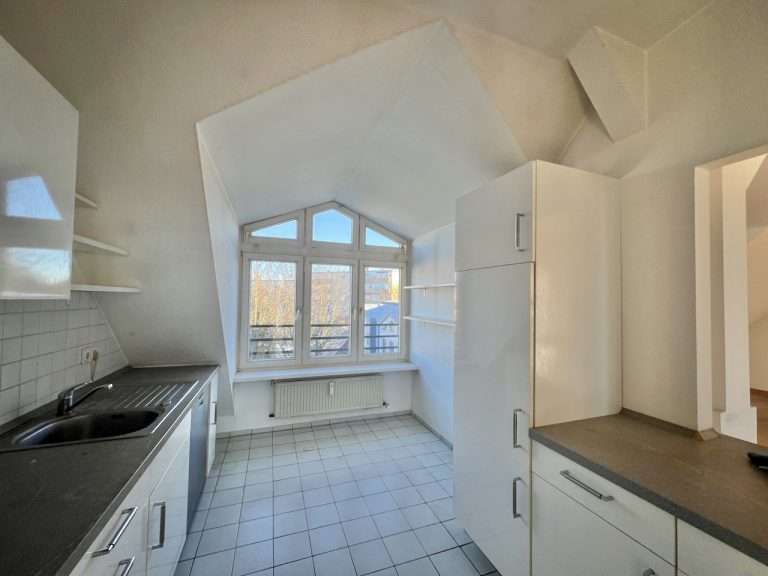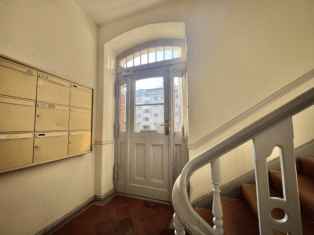 Das Mehrfamilienhaus wurde um die Jahrhundertwende erbaut. Die Wohnung befindet sich im Dachgeschoss, das in den 1990er-Jahren aufgesetzt wurde, und ist über das Treppenhaus erreichbar.