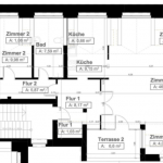 Der Grundriss kann bei Bedarf dahingehend verändert werden, dass das Wohnzimmer geteilt wird, so dass ein weiterer Raum entsteht.