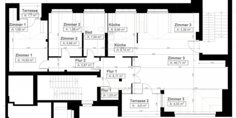 Die Wohn-/Nutzfläche beträgt ca. 122 m² und verteilt sich auf einen großzügigen Eingangsbereich; zwei Schlafzimmer, wobei ein Schlafzimmer Zugang zu einer Terrasse bietet; ein tagesbelichtetes Badezimmer mit Badewanne; einen offen gehaltenen Küchenbereich sowie einen großzügigen Wohnbereich mit Zugang zu einer weiteren Terrasse. Der Wohnbereich verfügt über einen Kamin.