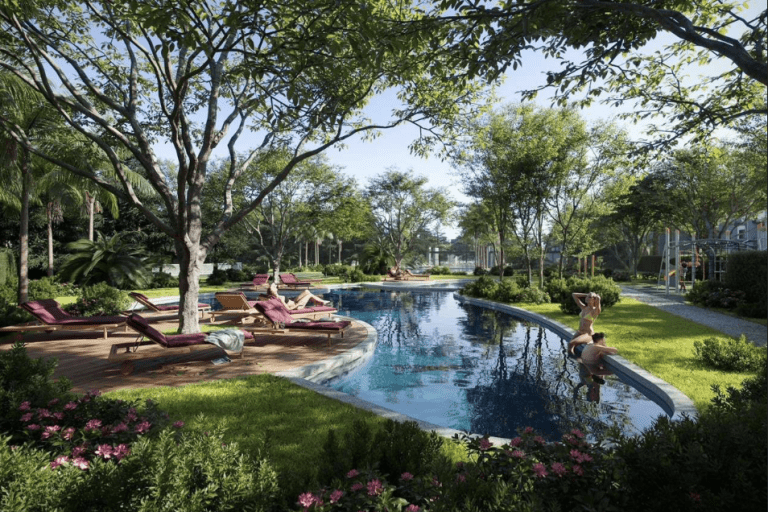 Die gesamte Anlage verfügt über weitläufig angelegte Grünanlagen, Gemeinschaftspools und diverse Einrichtungen wie zum Beispiel ein Clubhaus, ein Fitnessraum oder ein Tennisplatz.