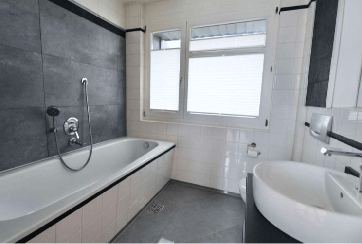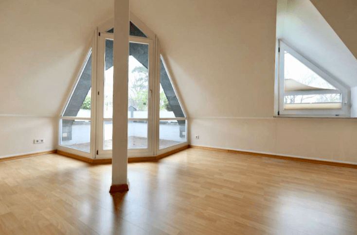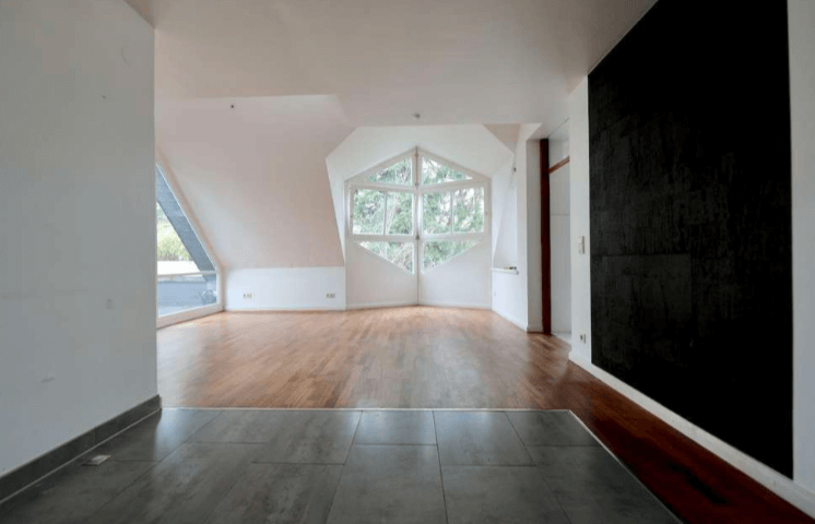 Der großzügige Wohn-/Essbereich ist ausgestattet mit einem Parkettboden, der nach eigenen Vorstellungen aufgearbeitet werden kann, und die Schlafzimmer sind mit einem Laminatboden ausgestattet. Auf der oberen Ebene kann ein Bodenbelag nach eigenen Wünschen verlegt werden. Die Wände sind tapeziert. Die Holzfenster sind zweifach isolierverglast und lassen viel Licht in die Wohnung. Die tagesbelichteten Bäder sind modern ausgestattet.