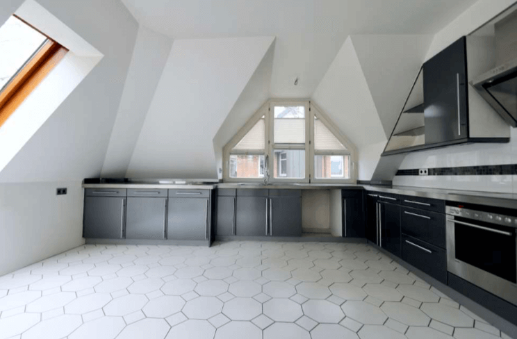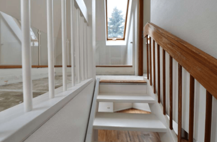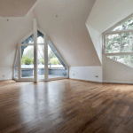 Die Wohnung befindet sich im hinteren der drei Häuser, ist im ersten Obergeschoss sowie im Dachgeschoss gelegen und ist bequem über das Treppenhaus zu erreichen.