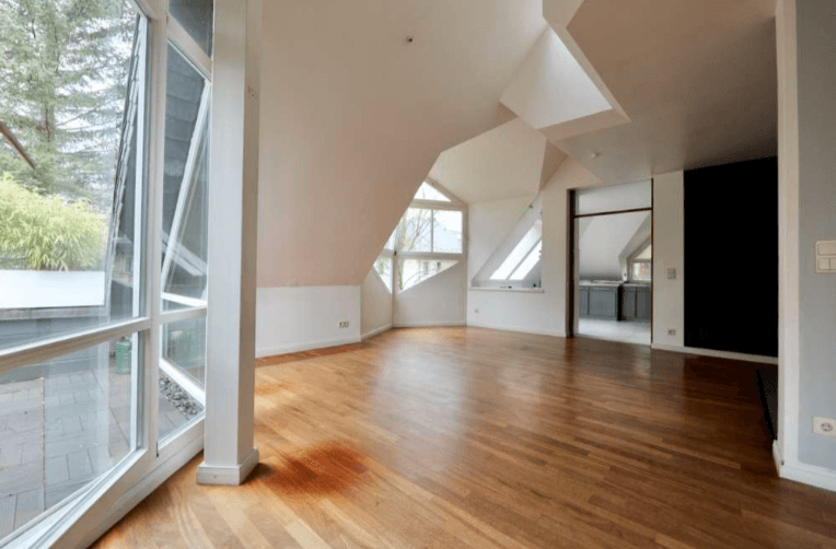 Die Wohnfläche beläuft sich insgesamt auf ca. 161 m². Die Wohnung überzeugt durch eine außergewöhnliche Architektur, helle Räume und zwei sonnige Terrassen.
