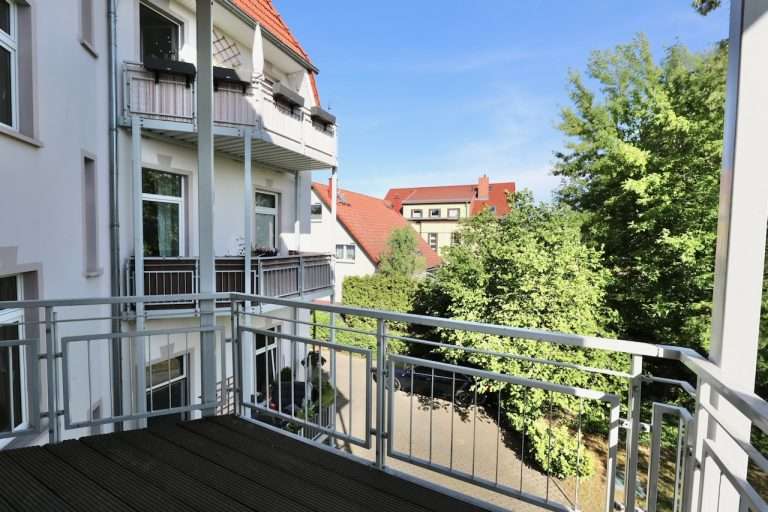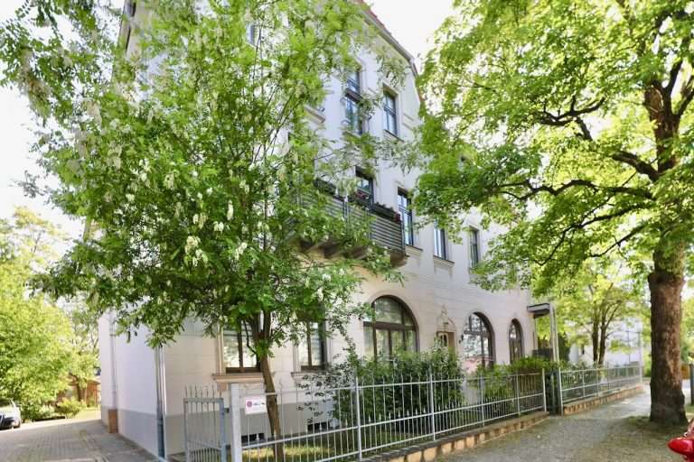 Das repräsentative Mehrfamilienhaus wurde um die Jahrhundertwende auf einem schönen Eckgrundstück erbaut und präsentiert sich in einem gepflegten Zustand. Die Wohnung befindet sich im 1. Obergeschoss und ist über das Treppenhaus erreichbar.