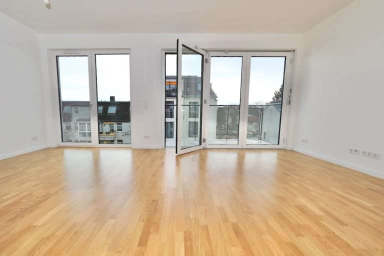 Die Wohnräume sind mit hochwertigem Parkettboden und einer Fußbodenheizung ausgestattet, die Wände sind gespachtelt, die bodentiefen Kunststofffenster dreifach isolierverglast und die Deckenhöhe beträgt ca. 2,60 m.