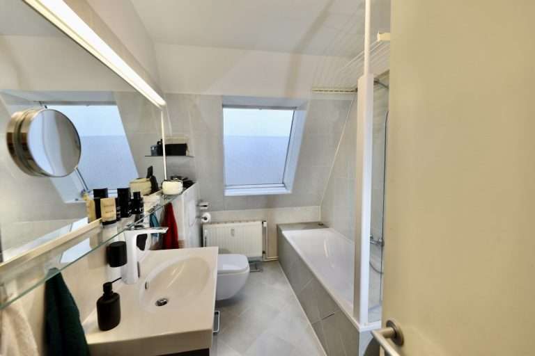 Die Wohnung befindet sich im Dachgeschoss und ist bequem mit dem Aufzug sowie über eine halbe Etage zu erreichen.