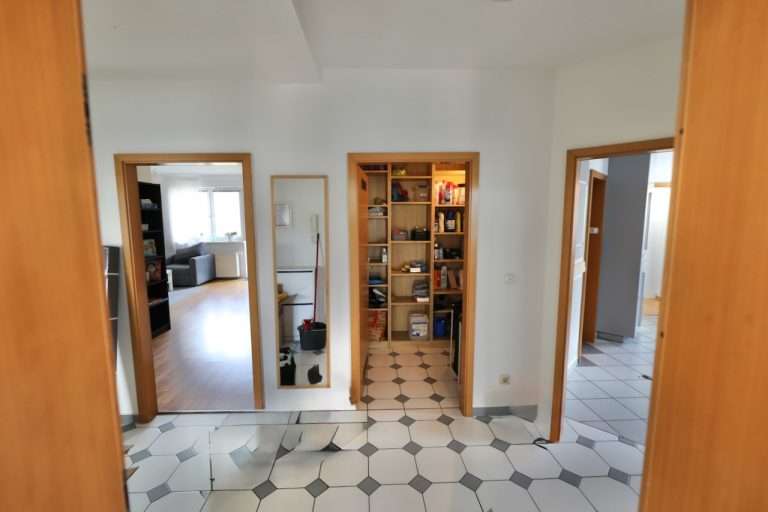 Der Wohnung im Erdgeschoss umfasst einen großzügigem Eingangsbereich mit Gäste-WC, ein Badezimmer mit Badewanne und separater Dusche, eine Küche, vier Zimmer, eine praktische Abstellkammer, sowie eine ca. 16 m² große Terrasse, die sich durch ihren sonnigen Bereich ideal zum Entspannen eignet. Die Außenbereiche und der Garten sind liebevoll angelegt.