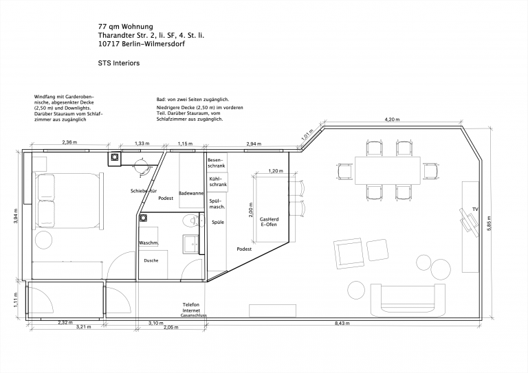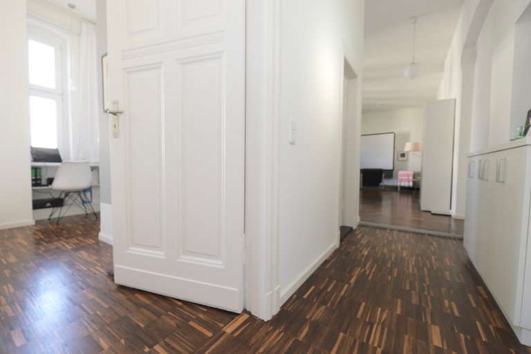 Die Wohnung befindet sich im vierten Obergeschoss des Seitenflügels, welcher mit einem Treppenlift ausgestattet ist, und verfügt über eine Wohnfläche von ca. 77 m².