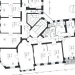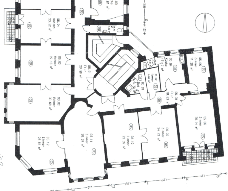 Vom Flur aus gelangt man in zwei mit einer Flügeltür verbundenen Zimmer. Daneben- liegend befindet sich jeweils noch ein weiteres Zimmer. Eines der beiden Zimmer ermöglicht den Zugang zum Balkon, während das andere der beiden Zimmer den Zugang zu dem nächsten Zimmer bietet.
