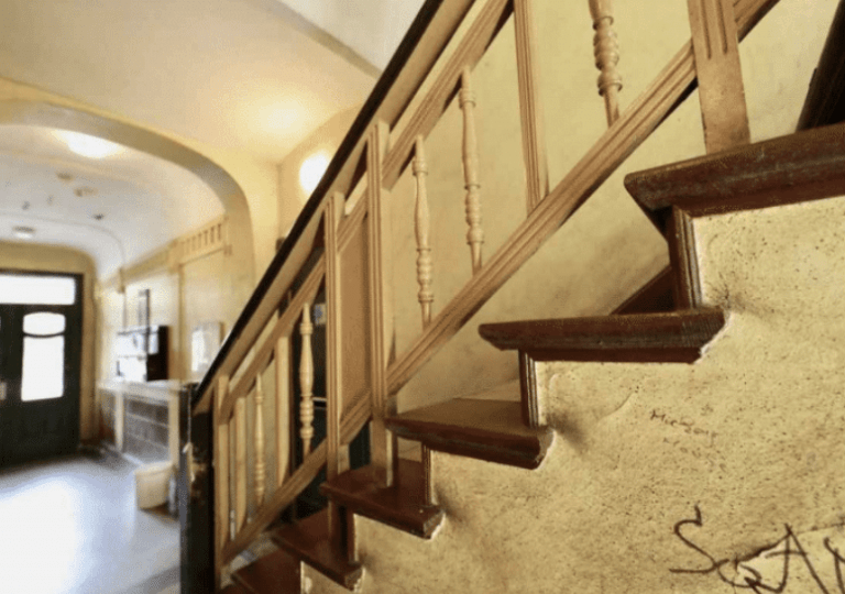 Das fünfgeschossige Wohnhaus wurde 1920 erbaut. Es handelt sich um ein Eckgebäude mit einem Seitenflügel.