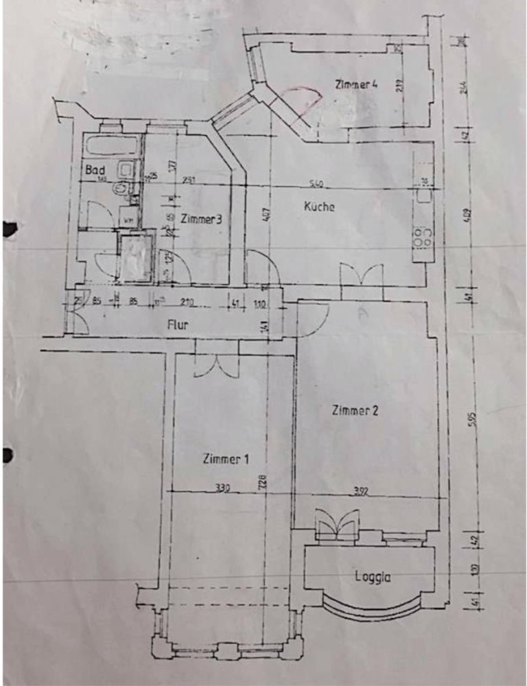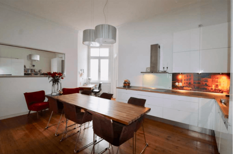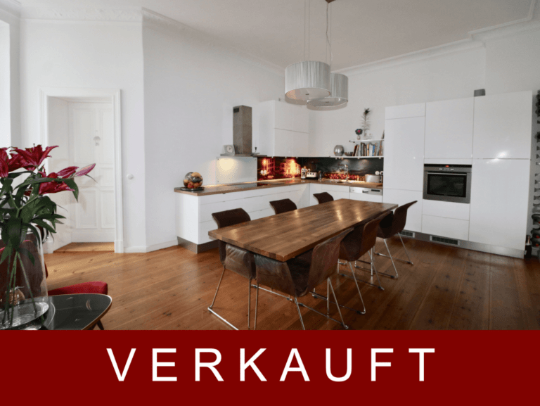 Sowohl vom Flur als auch vom Wohnzimmer aus gelangen Sie durch eine Flügeltür in die geräumige und stilvoll eingerichtet Wohnküche, die ausreichend Platz für einen großen Esstisch bietet. Ein viertes Zimmer, ruhig zum Innenhof ausgerichtet, steht weiterhin zur Verfügung.