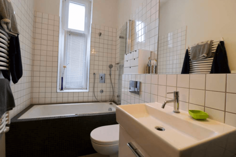 Der Flur bietet genügend Platz für eine Garderobe und einen separaten Abstellraum. Zur linken Seite befindet sich das modernisierte, tagesbelichtete Wannenbad. Gleich daneben ist eines der vier Zimmer gelegen, welches sich optimal als ein Arbeits-, Gäste- oder Kinderzimmer eignet.