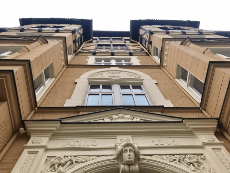 Das um die Jahrhundertwende erbaute Wohnhaus ist in ein Vorder- und in ein Gartenhaus aufgeteilt. Insgesamt verteilen sich 24 Einheiten über drei Obergeschosse zuzüglich des Dachgeschosses.