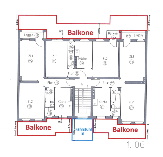 Es besteht weiterhin die Option, im Hofbereich zukünftig Balkone sowie einen Fahrstuhl anzusetzen.