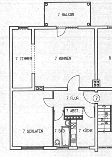 Die Wohnung befindet sich im dritten Obergeschoss des Vorderhauses und verfügt über eine Wohnfläche von ca. 69,05 m². Diese verteilt sich auf einen Flur mit Abstellkammer, auf zweieinhalb Zimmer, sowie eine Küche und ein tagesbelichtetes Wannenbad.