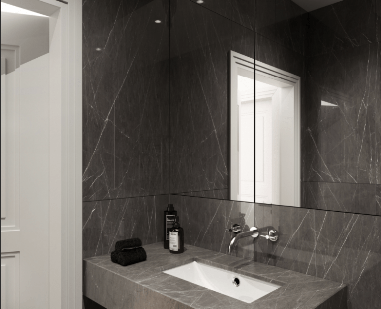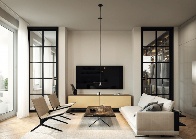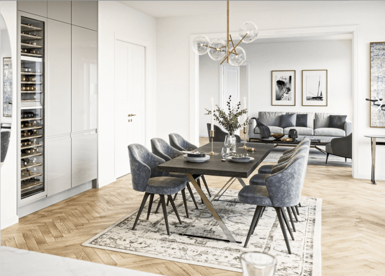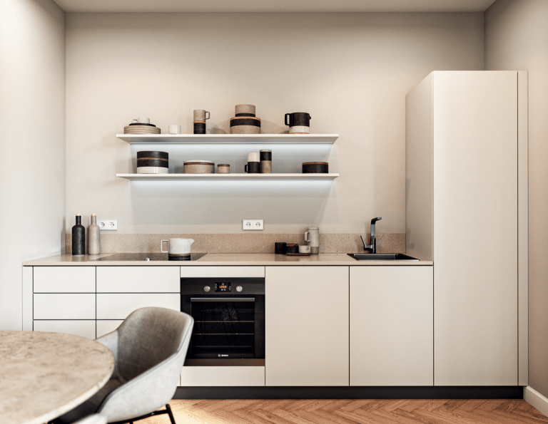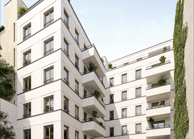 Die Architektur dieses Stadthauses mit nur 13 Wohneinheiten wird hohen Ansprüchen gerecht, nimmt sich zugleich aber auch bewusst zurück. Entstanden ist ein Entwurf, der innen wie außen zeitlose Eleganz ausstrahlt. Dadurch fügt sich das Stadthaus in der Schlüterstraße 18 sehr harmonisch in die historisch gewachsene Stadt- und Häuserstruktur des beliebten urbanen Viertels ein. Die klar strukturierte Fassade mit hochwertigen Putz- aber auch Ziegeloberflächen gibt dem Haus einen besonderen Charakter und ist durch Verwendung von mineralischem Dämmmaterial darüber hinaus nachhaltig gefertigt. Dieser setzt sich durch die vielfältigen Wohnungszuschnitte und unterschiedlichen Größen – mit Blick in den städtischen Raum und in den privaten Hofgarten – fort.