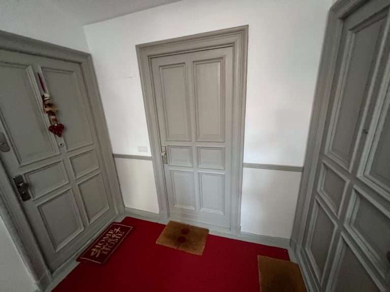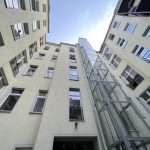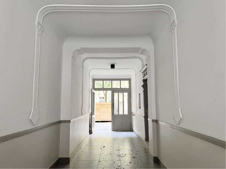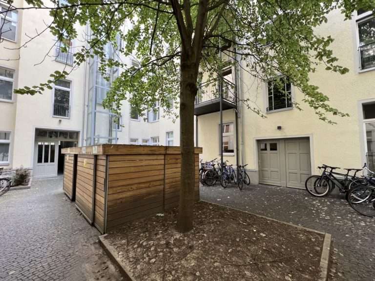 Die Wohnung befindet sich im vierten Obergeschoss des Hinterhauses und ist bequem mit dem Aufzug sowie über eine halbe Treppe zu erreichen.