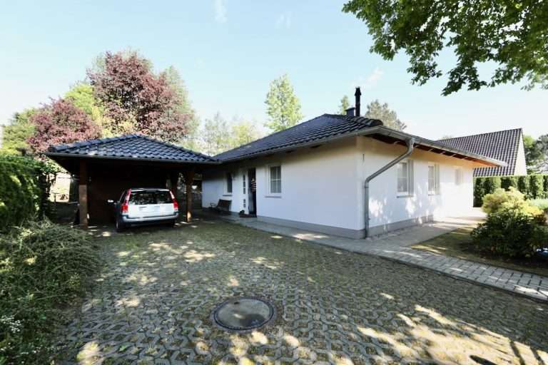 In der Einfahrt und unter einem hochwertigen Carport finden zwei Fahrzeuge bequem Platz.