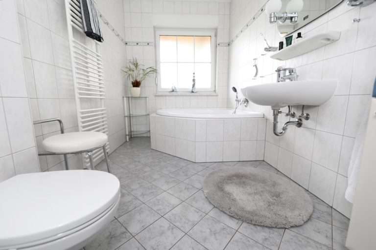 Im Hauswirtschaftsraum befindet sich die Haustechnik. Neben ausreichend Platz für Waschmaschine und Trockner ist hier eine Gas-Brennwerttherme installiert, die das Haus über eine Fußbodenheizung beheizt und mit Warmwasser versorgt.