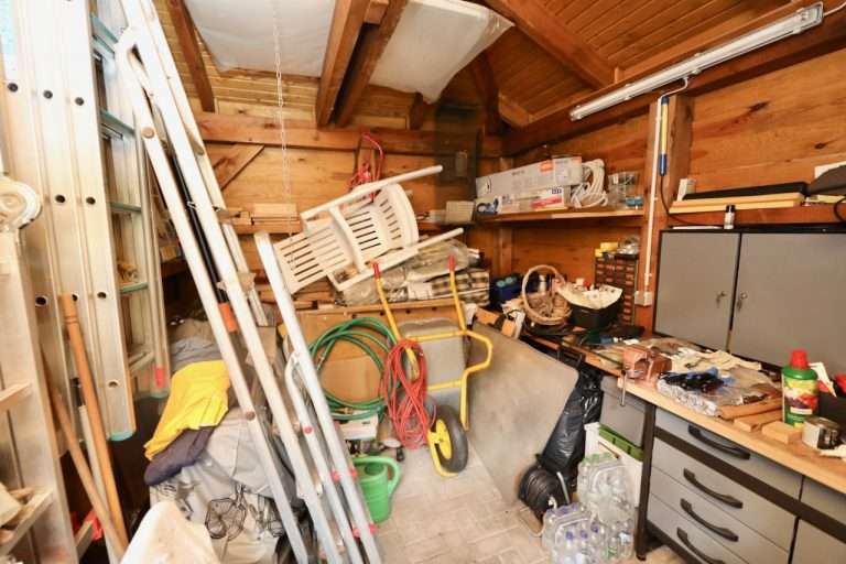 Ein Geräteschuppen mit integrierter Werkstatt hinter dem Carport rundet das Angebot ab.