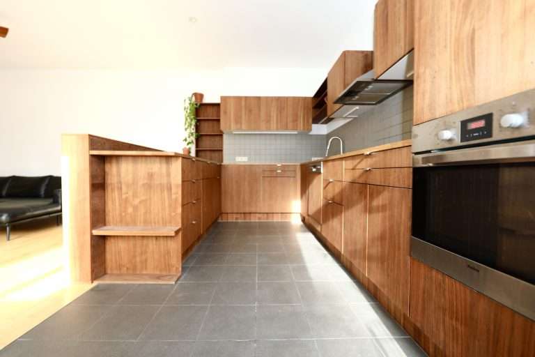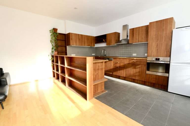 Eine Wohnfläche von ca. 102 m² verteilt sich auf einen Eingangsbereich; ein Gäste-WC; ein neuwertiges Badezimmer, ausgestattet mit einem Doppelwaschbecken, einer Badewanne und einer separaten Dusche; zwei Schlafzimmer sowie ein im Seitenflügel der Wohnung gelegener, sehr großzügiger Wohnbereich mit offener Küche und einem hübschen französischen Balkon. Zudem steht noch eine praktische Abstellkammer zur Verfügung.