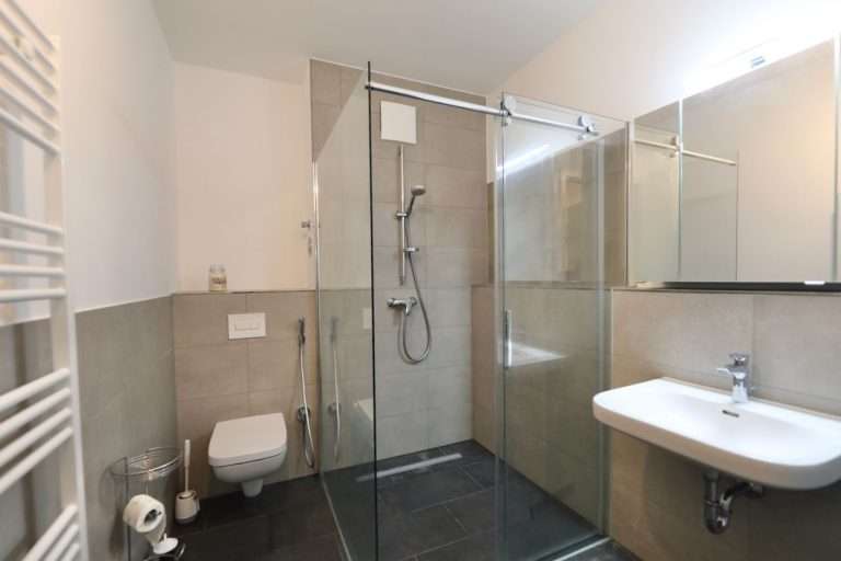 Die Wohnräume sind mit Stäbchen-Parkettboden ausgestattet, und die Wände sind gespachtelt. Die bodentiefen Kunststofffenster sind dreifach verglast, und die Deckenhöhe beträgt ca. 2,70 m. Beheizt wird die Wohnung mittels einer energieeffizienten Fußbodenheizung.