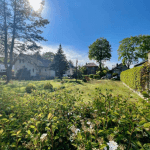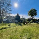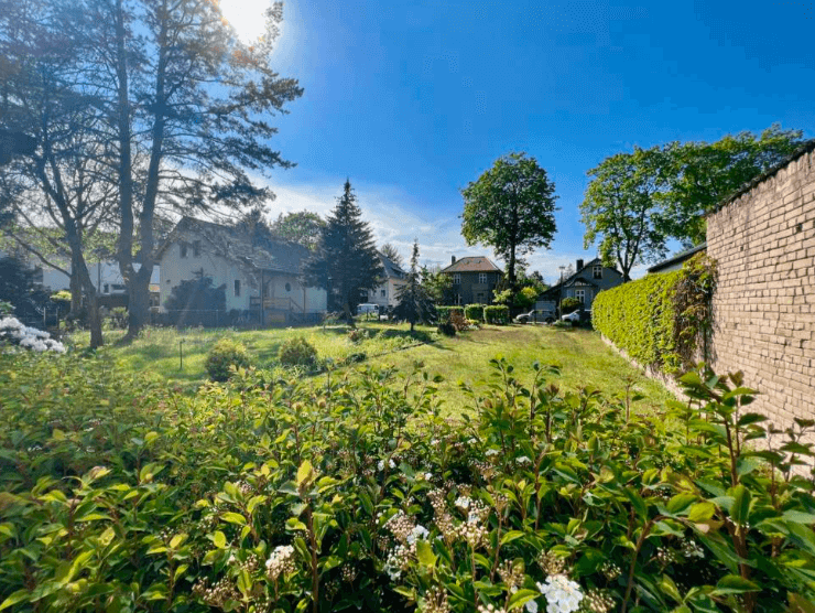 Auf dem rechteckigen Grundstück befindet sich ein Haus, welches abgerissen werden müsste. Die Breite beträgt ca. 20 m.