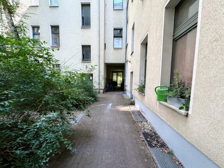 Das Wohn- und Geschäftshaus wurde 1910 erbaut und ist in ein Vorderhaus, einen rechten Seitenflügel, ein Hinterhaus und einen linken Seitenflügel aufgeteilt. Die Wohnung befindet sich im zweiten Obergeschoss des linken Seitenflügels, ist ruhig zum 2. Innenhof gelegen und über das Treppenhaus erreichbar.