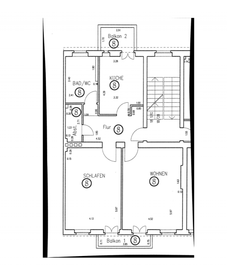 Des Weiteren verfügt die Wohnung über zwei Balkone. Einer der beiden Balkone hat eine nördliche Ausrichtung, und der andere ist südlich ausgerichtet.
