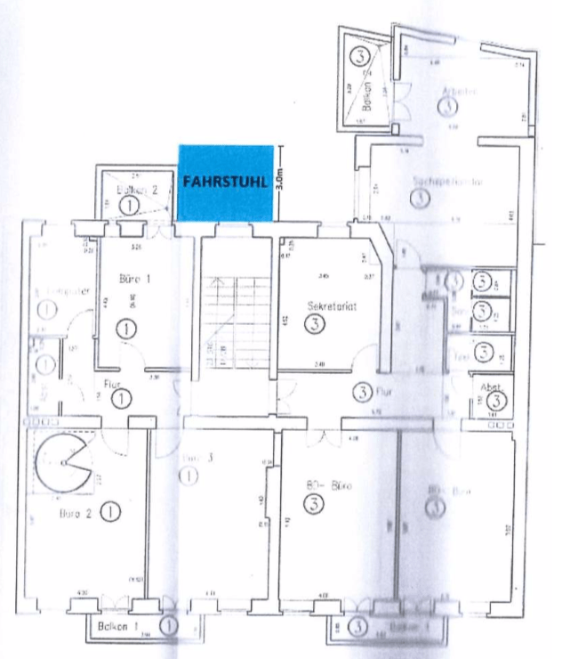 Es besteht die Möglichkeit, zukünftig einen Fahrstuhl an das Gebäude anzusetzen.