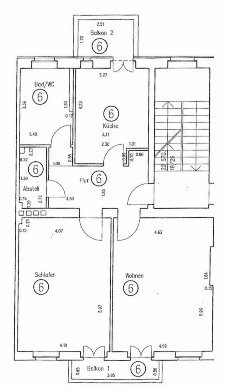 Des Weiteren verfügt die Wohnung über zwei Balkone. Einer der beiden Balkone hat eine nord-westliche Ausrichtung, und der andere ist östlich ausgerichtet.