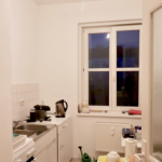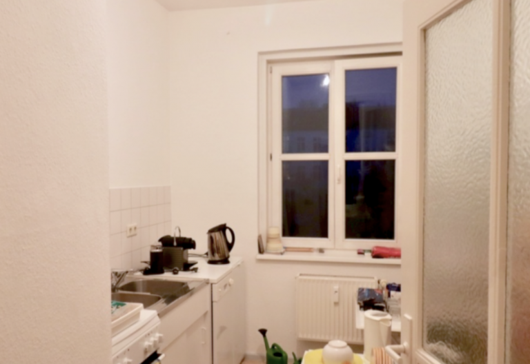 Die neben dem Schlafzimmer befindliche Küche ist berlintypisch mit Herd und Spüle ausgestattet und bietet Platz für einen Essplatz.