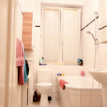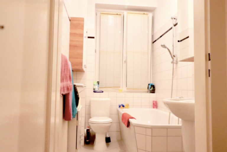 Das Badezimmer, das mit einer Badewanne ausgestattet ist, befindet sich linker Hand neben dem Eingangsbereich und verfügt über ein Fenster.