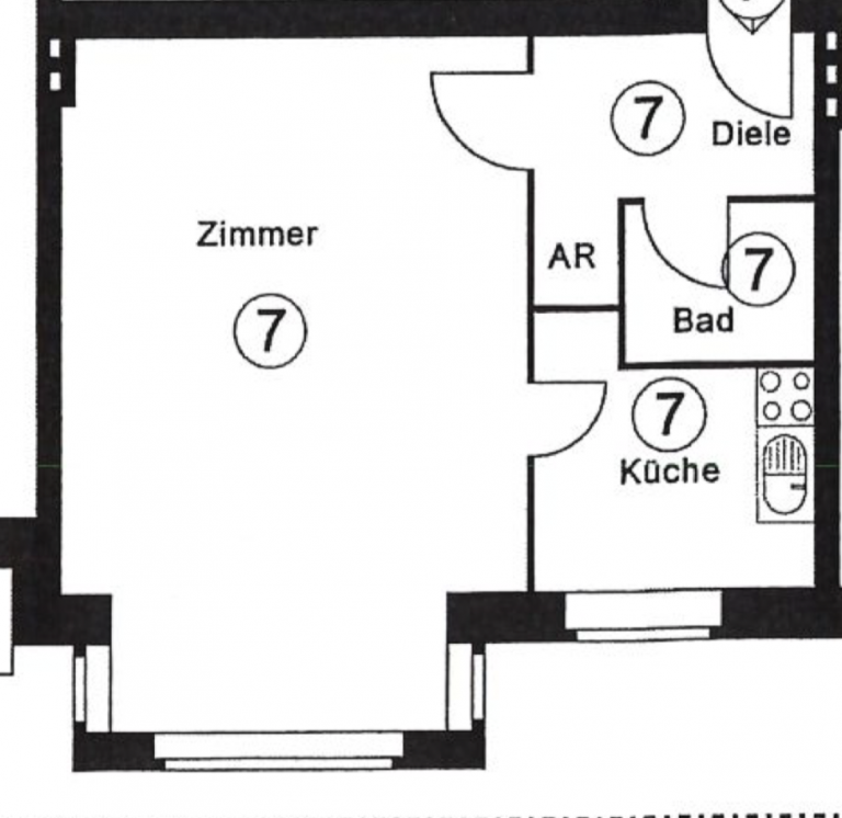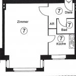 Vom Eingangsbereich aus gelangt man geradezu in das innenliegende Badezimmer. Rechts vom Eingangsbereich aus befindet sich das geräumige Wohn-/Schlafraum, welcher auch Zugang zur Küche bietet. Die Küche und der Wohn-/Schlafraum verfügen über ein Fenster. Im Flur steht ausserdem eine Abstellkammer zur Verfügung, die viel Stauraum bietet.