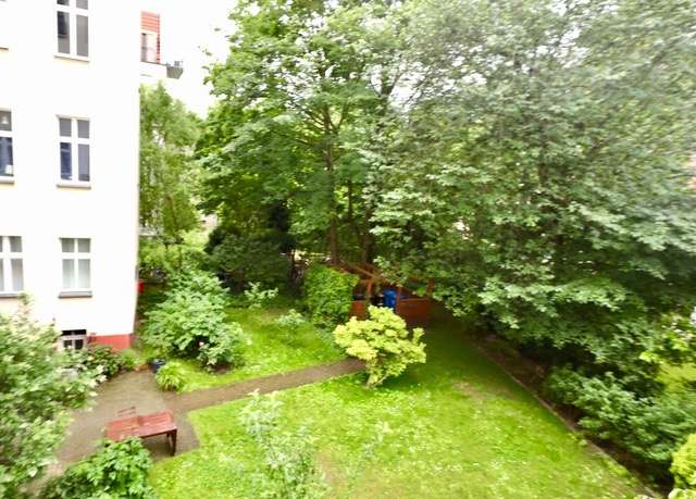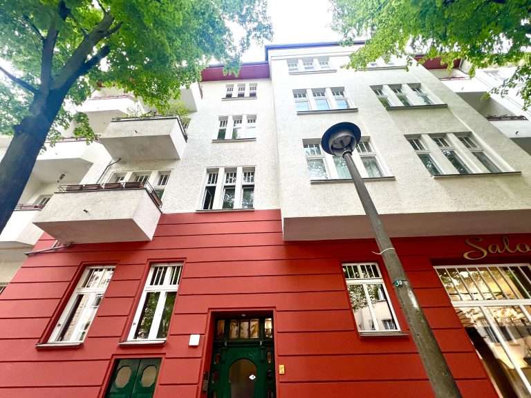 Das Wohn- und Geschäftshaus befindet sich in einer ruhigen Seitenstraße, direkt am Treptower Park gelegen.