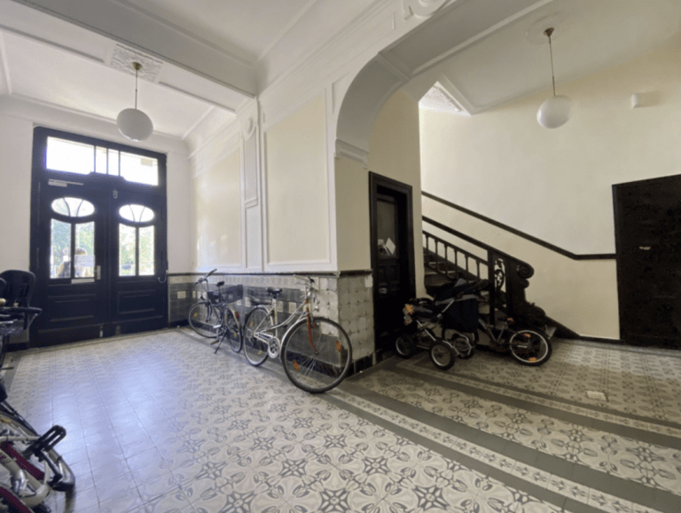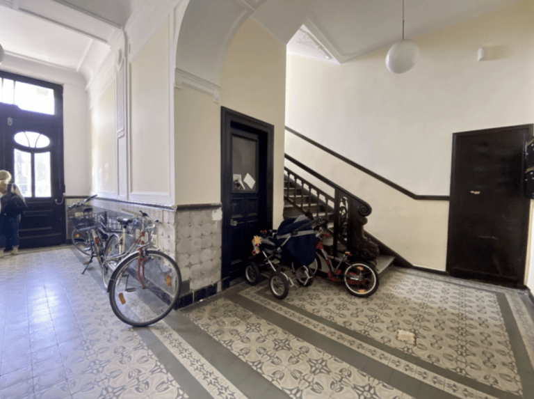 Das Wohn- und Geschäftshaus-Ensemble wurde 1912 erbaut und bildet ein Karree mit zwei Hauseingängen. Die Hauseingänge und Treppenhäuser repräsentieren die Baukunst der Gründerzeit.