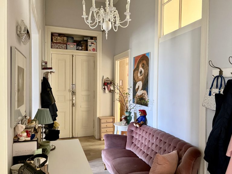 Die Wohnung befindet sich im Erdgeschoss und verfügt über ca. 129,04 m² Wohnfläche, die sich auf fünf Zimmer nebst Küche und ein tagesbelichtetes Wannenbad verteilen. Dabei sind zwei Zimmer, die miteinander verbunden sind, zur Spree und dem Schlosspark ausgerichtet.