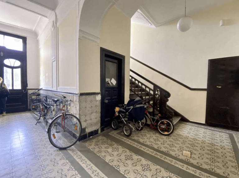 Stilvolle Altbauelemente wie hohe Decken, Stuck, Flügeltüren und Doppelkastenfenster bieten den begehrten Altbau-Charme.