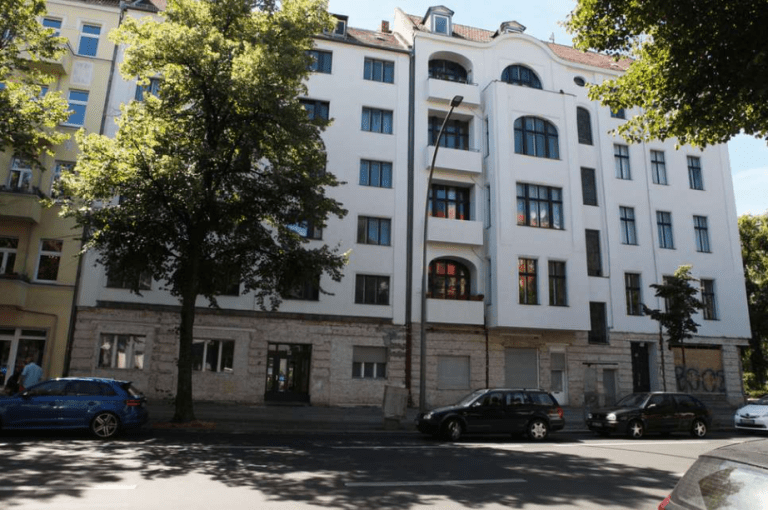 Das Wohn- und Geschäftshaus-Ensemble wurde 1912 erbaut und bildet ein Karree mit zwei Hauseingängen. Die Hauseingänge und Treppenhäuser repräsentieren die Baukunst der Gründerzeit.