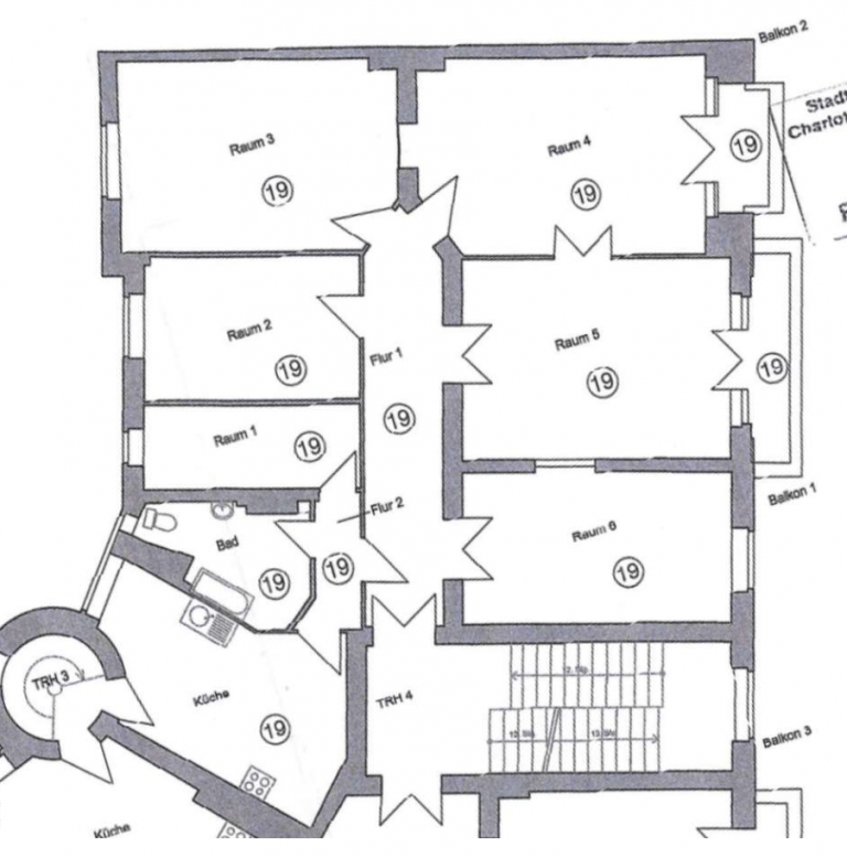 Die Wohnung befindet sich im 4. Obergeschoss und verfügt über ca. 162,61 m² Wohnfläche, die sich auf fünf Zimmer nebst einer Küche und einem Badezimmer verteilt. Davon sind drei Zimmer und zwei Balkone zur Spree und dem Schlosspark ausgerichtet.
