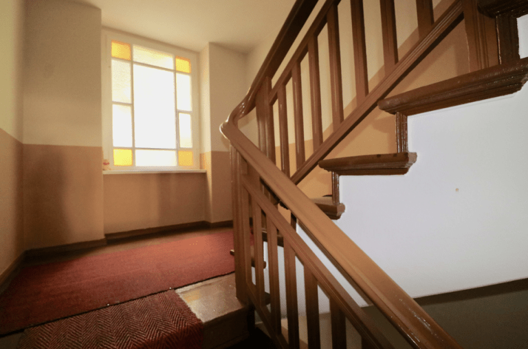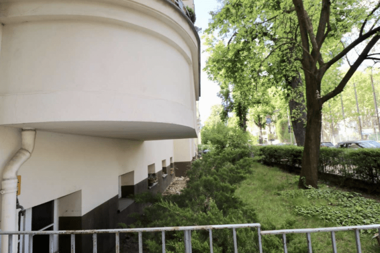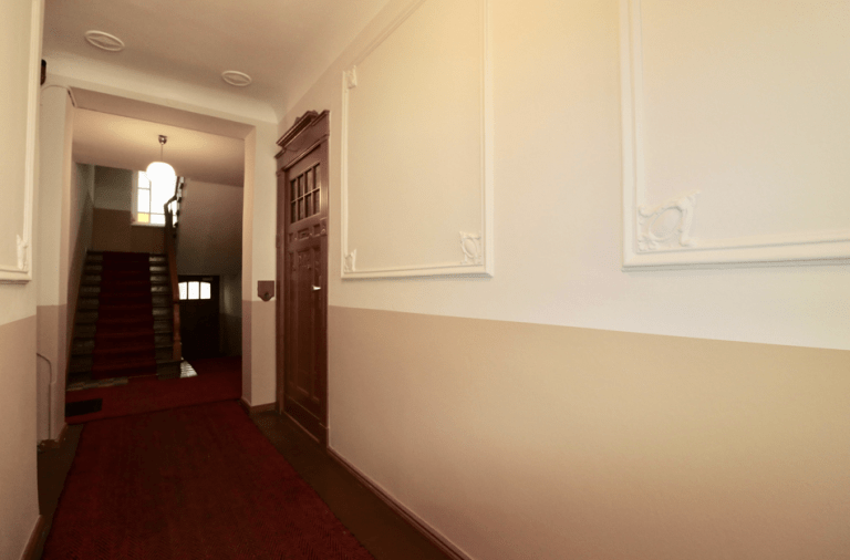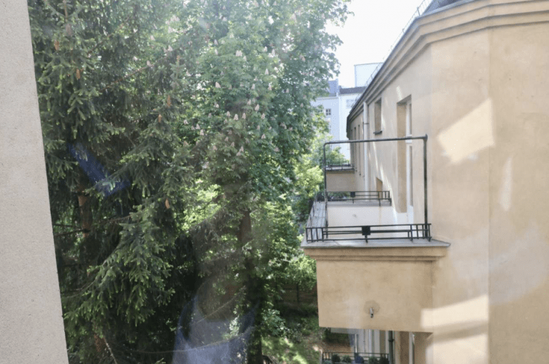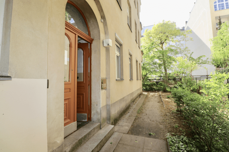 Das Mehrfamilienhaus wurde 1910 erbaut, steht unter Denkmalschutz und ist in ein Vorderhaus und einen Seitenflügel aufgeteilt. Die Wohnung befindet sich im Hochparterre des Vorderhauses des 4-geschossigen Gebäudes.