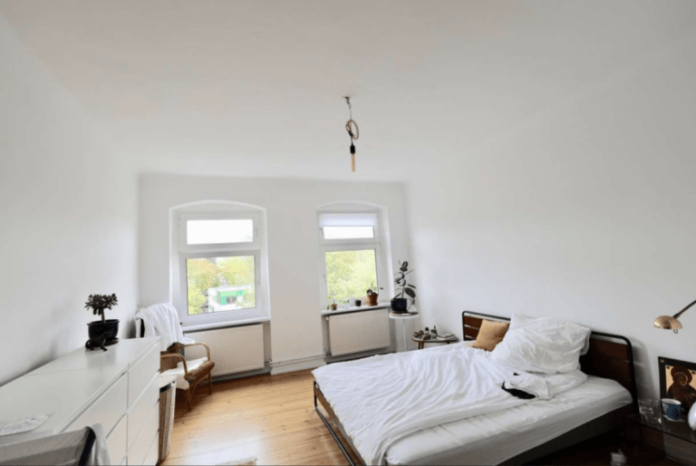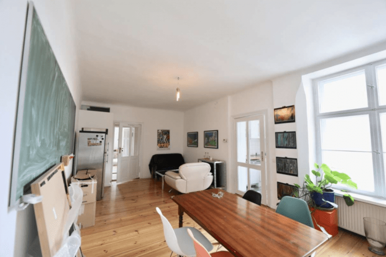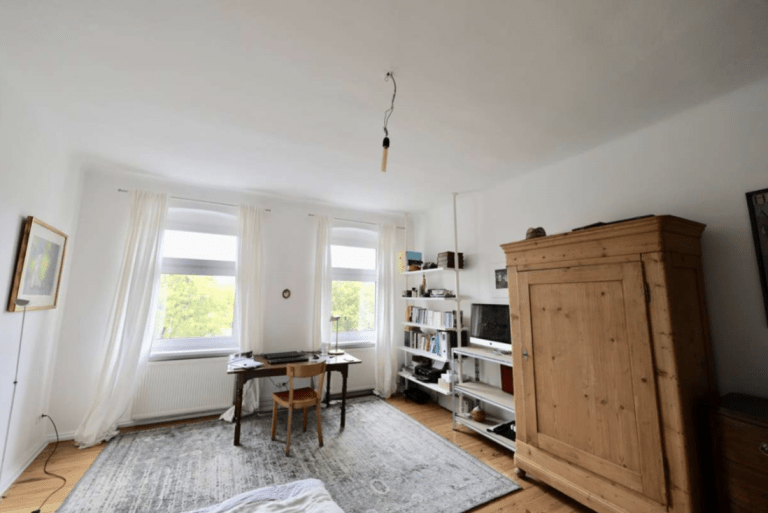 Das 5-geschossige Wohngebäude wurde 1885 erbaut und ist in ein Vorderhaus, einen Seitenflügel und ein Quergebäude aufgeteilt. Die Wohnung ist im 3. Obergeschoss des Vorderhauses gelegen und verfügt über ca. 91 m² Wohnfläche, die sich auf drei Zimmer verteilen.