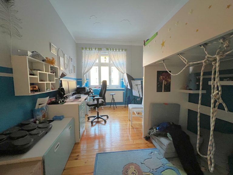 In den Wohnräumen sind, dem Baujahr stilistisch getreu, Holzdielen verlegt. Das Badezimmer und die Küche sind gefliest. Die Wände sind mit einer Tapete versehen, und die Deckenhöhe beträgt ca. 2,90m.