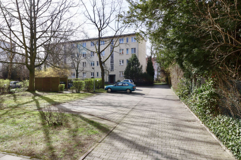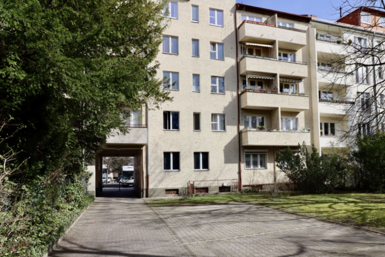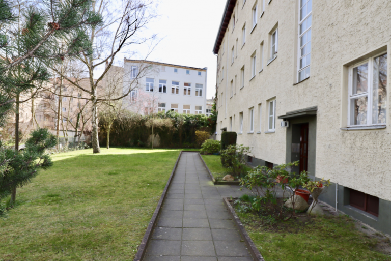 Die Wohnung ist im hinteren Gebäude, von der Straße zurückgesetzt, und somit ruhig gelegen. Die Lage im Hochparterre bietet einen bequemen Zugang.