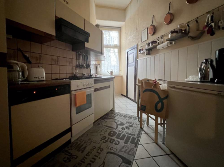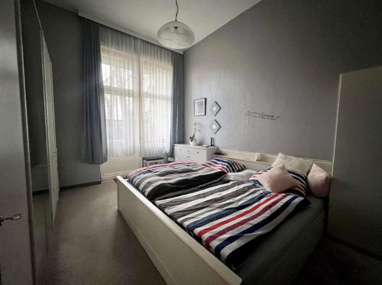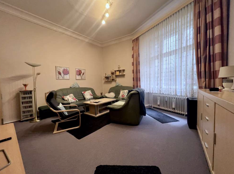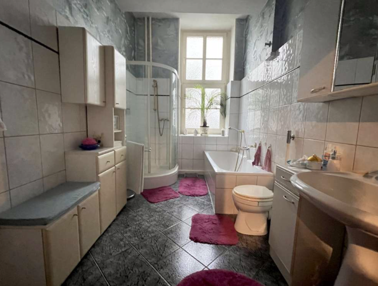 Die Wohnung ist im Eingangsbereich mit Fliesen ausgestattet, in den Wohnräumen mit Auslegware. Die Wände sind tapeziert. Die Zimmer verfügen über Holz-Doppelkastenfenster, im Badezimmer wurden neue Holzfenster eingesetzt und in der Küche Kunststofffenster . Eine Deckenhöhe von ca. 3,50m verleiht der Wohnung ein großzügiges Raumgefühl.